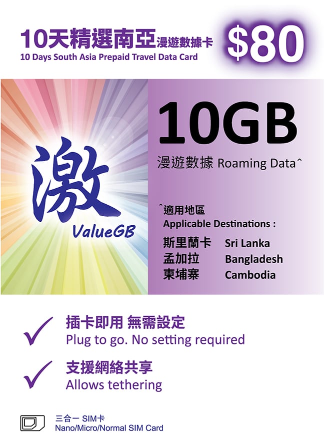 $80 South Asia Prepaid Travel Data Card (10 Days)